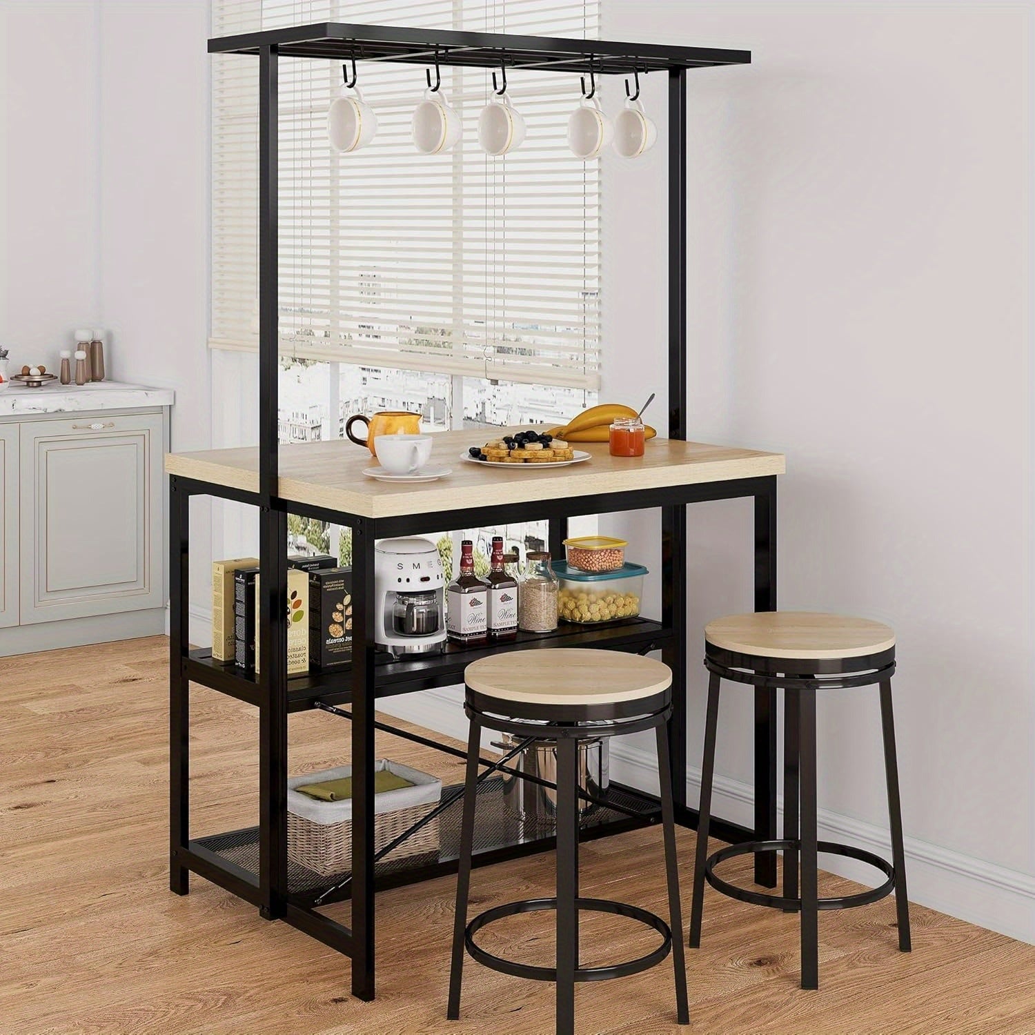 - Multifunctional kitchen island that doubles as a microwave stand, baker's rack, oven shelf, and coffee bar so you have everything you need within reach.