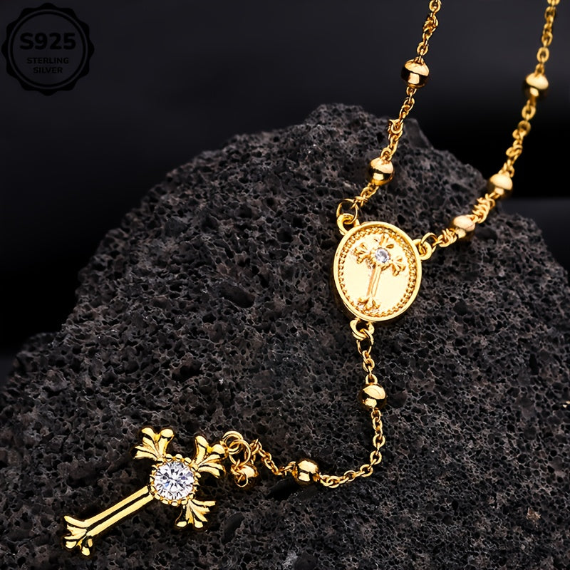 - Material & finish: Made from 925 sterling silver with a 925 silver-plated finish, featuring a bold Y-shaped rosary cross for contemporary elegance.
