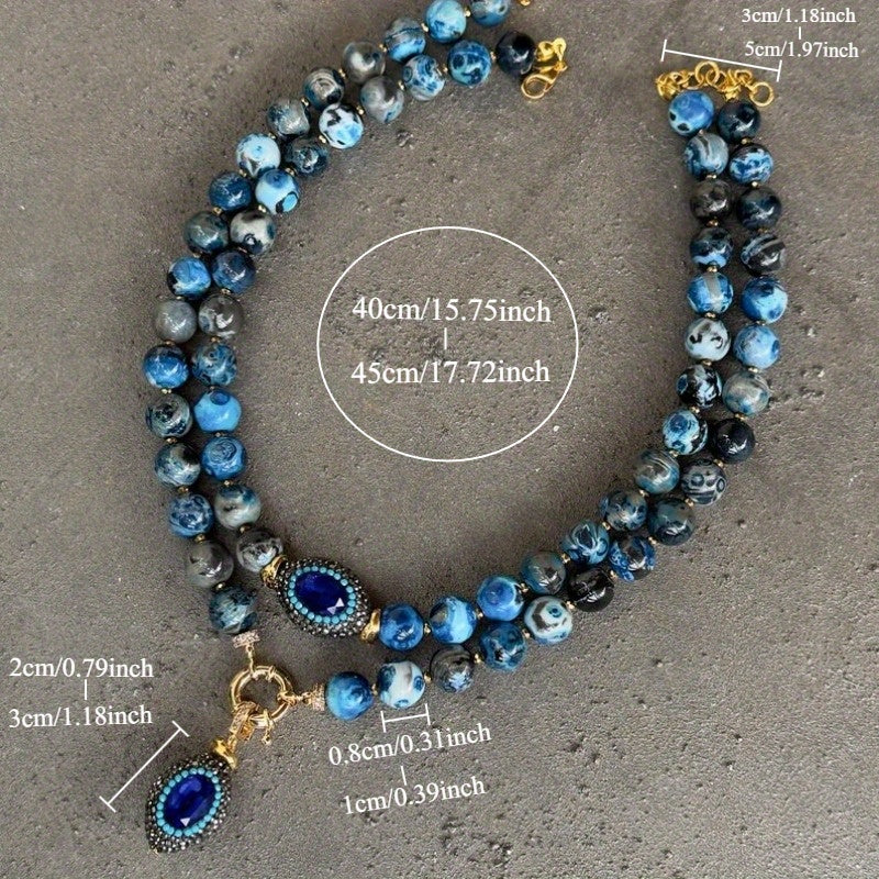 - Natural stone centerpiece with warm golden copper beads creates a versatile, earthy glow for your daily wear and vacation looks, catching natural light to subtly sparkle from every angle.
