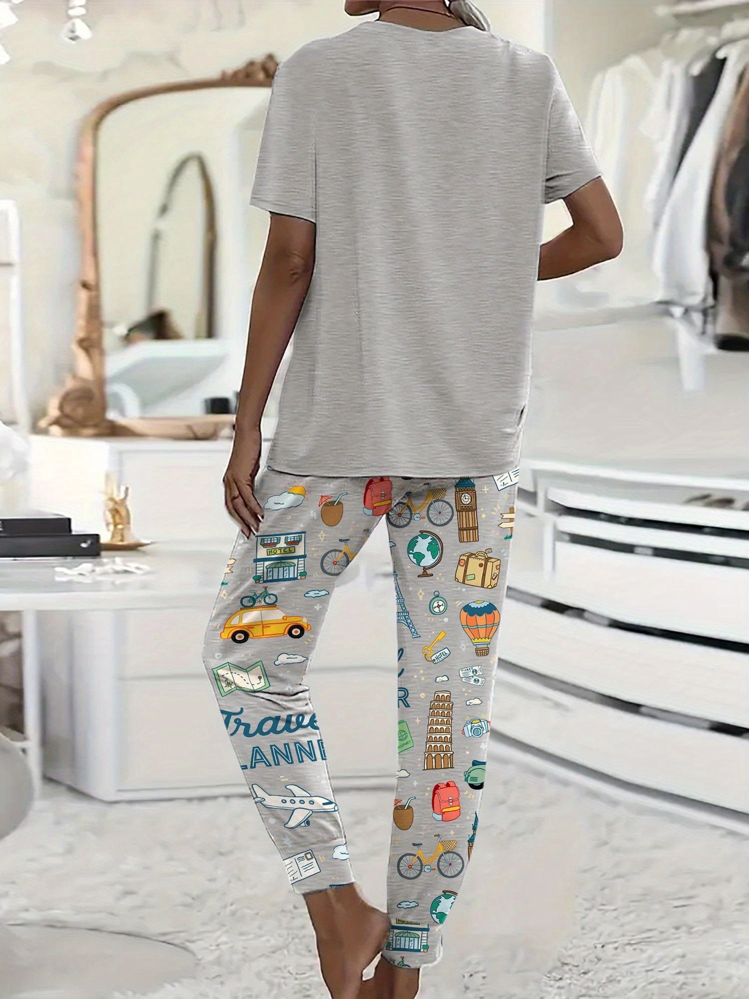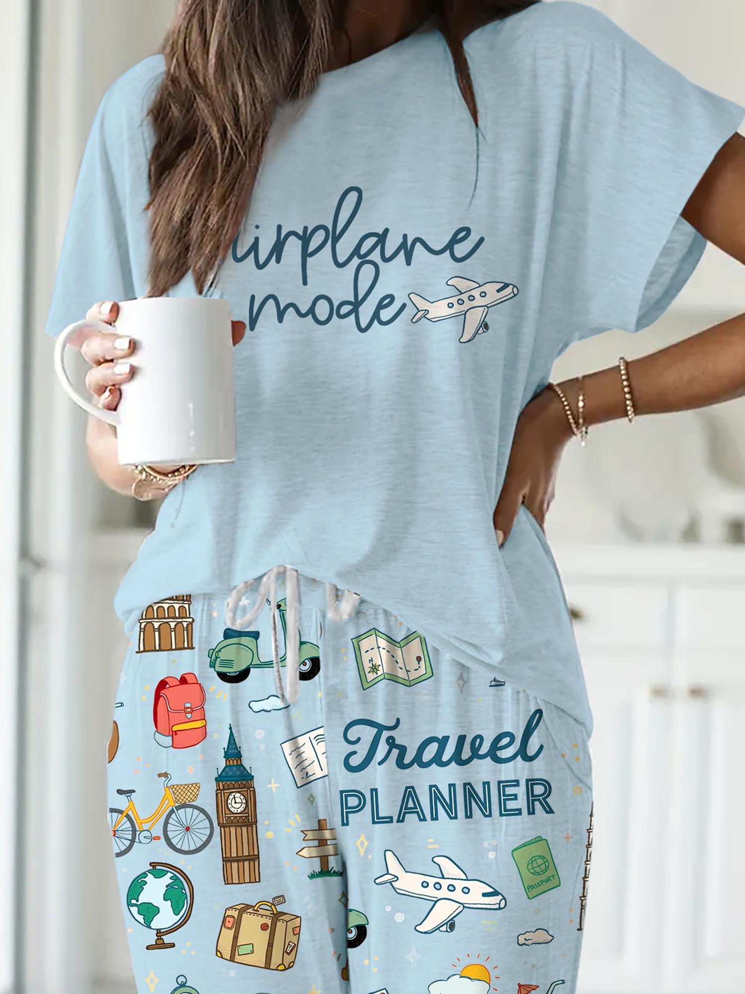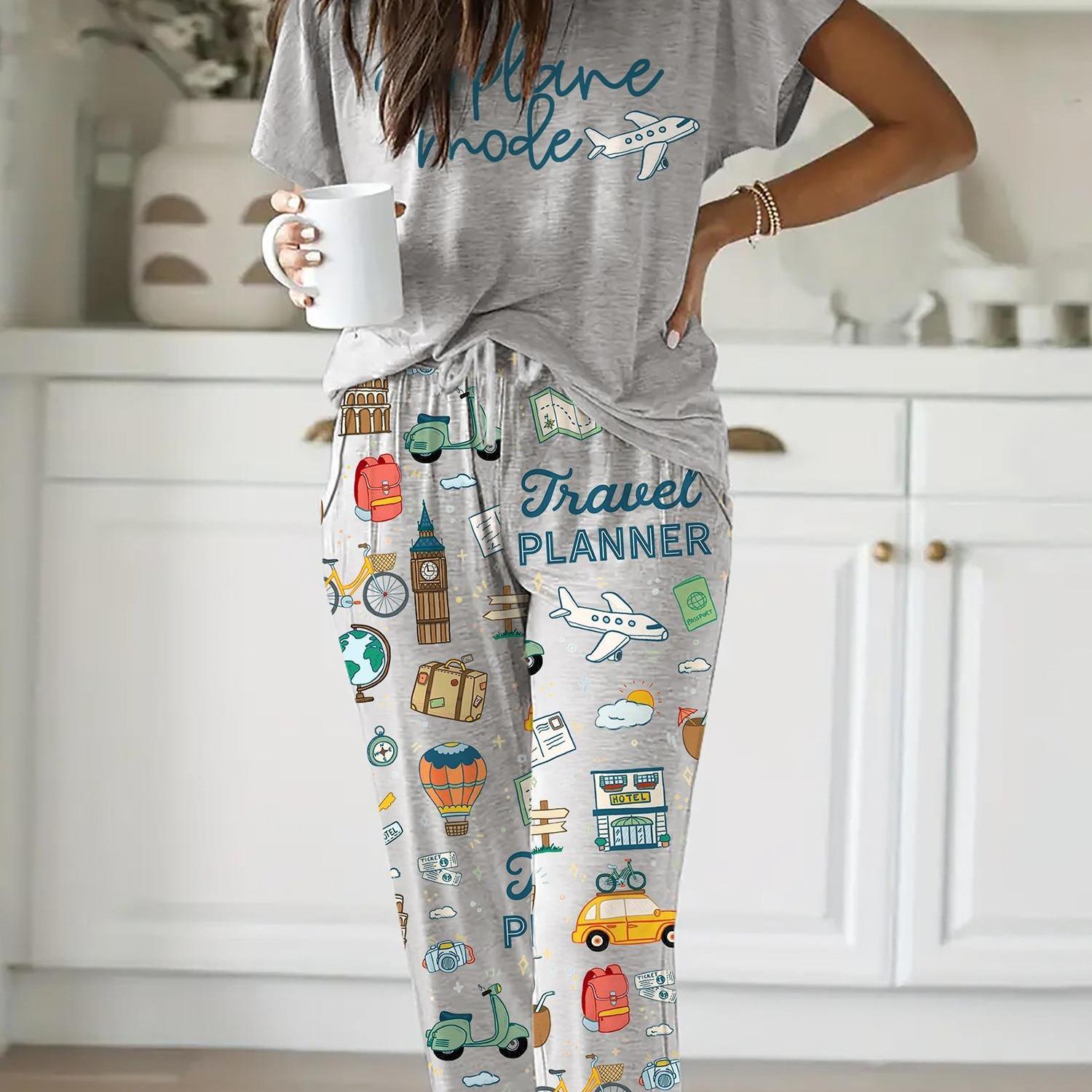 SHESHOW Travel Planner Pajama Set Women Casual Sleepwear