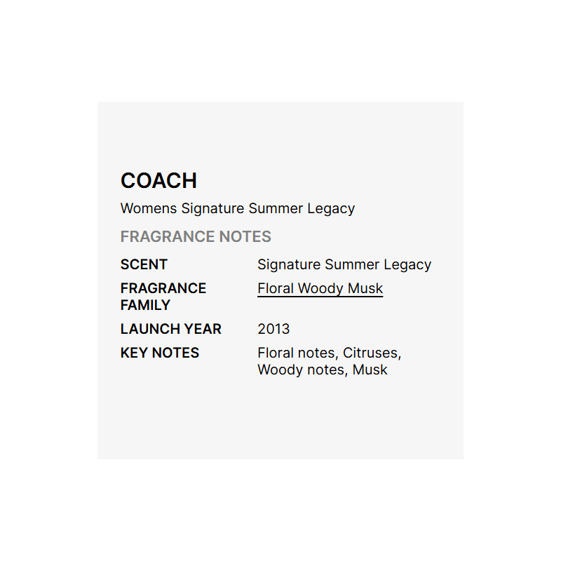 Discover timeless elegance with Coach Signature Eau De Parfum for Women, a floral-woody scent that elevates your moments.