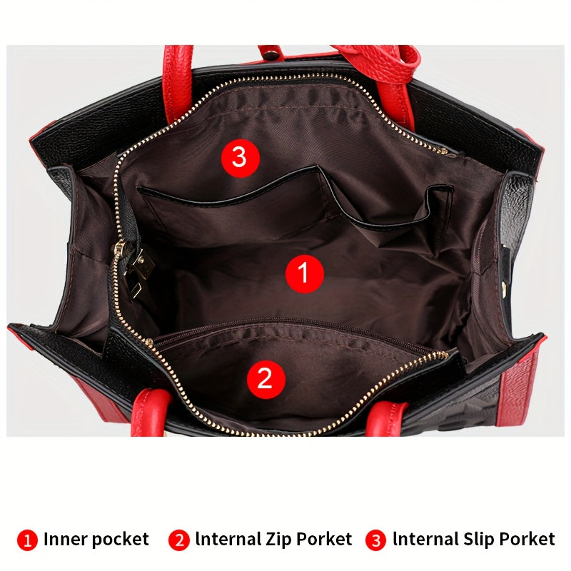 Genuine Cowhide Handbag And Crossbody With Adjustable Strap Zipper Closure